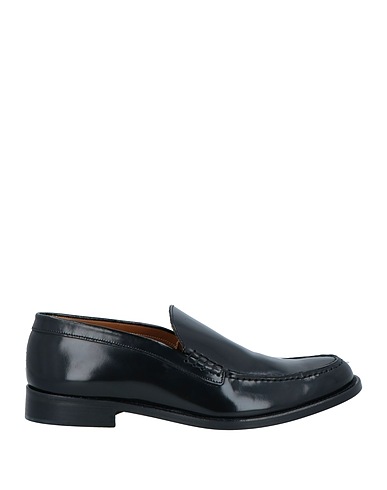 polished leather, no appliqués, solid color, leather lining, round toe, square heel, leather/rubber sole, contains non-textile parts of animal origin, loafers