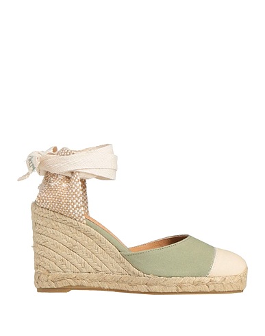 espadrille sandals, canvas, two-tone, no appliqués, round toe, wedge, rope heel, rubber sole, leather lining, contains non-textile parts of animal origin