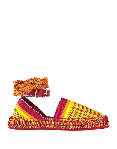 espadrille sandals, woven, multicolor, no appliqués, ties at ankle, round toe, flat, rubber sole, fabric inner