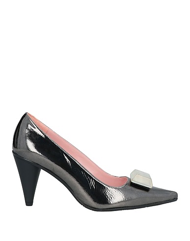 leather, metallic, embellished, solid color with appliqués, leather lining, pointed toe, cone heel, rubber cleated sole, contains non-textile parts of animal origin, pumps