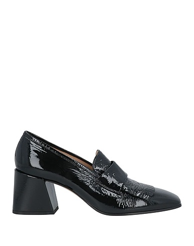 loafers, patent leather, solid color, fringes, leather lining, square toe, square heel, leather/rubber sole, contains non-textile parts of animal origin