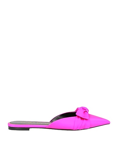 satin, bow-detailed, solid color with appliqués, leather lining, pointed toe, flat, leather sole, contains non-textile parts of animal origin, mules, small sized