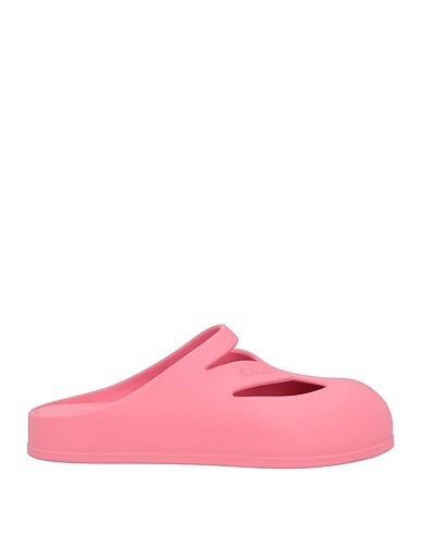 mules, rubber, solid color, brand logo, rubber lining, round toe, flat, rubber cleated sole