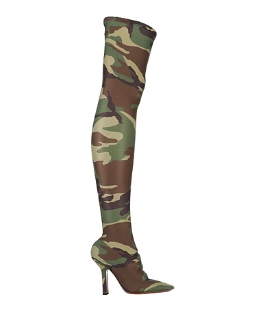synthetic jersey, no appliqués, camouflage-print, leather lining, square toe, square heel, covered heel, leather sole, contains non-textile parts of animal origin, boots