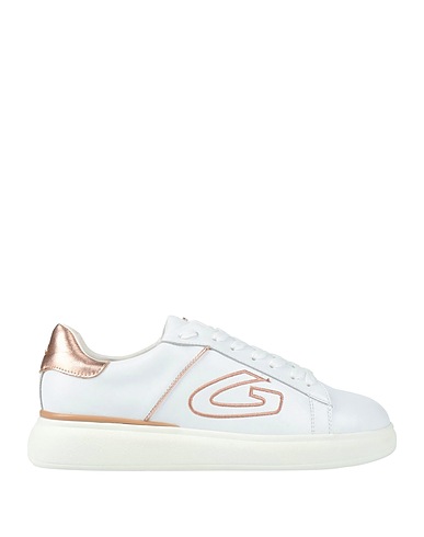 leather, metallic, embroidered logo, solid color with appliqués, leather lining, lace-up, round toe, flat, rubber cleated sole, contains non-textile parts of animal origin, low-top sneakers