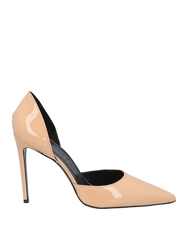 pumps, patent leather, solid color, no appliqués, leather lining, pointed toe, stiletto heel, rubber sole, contains non-textile parts of animal origin