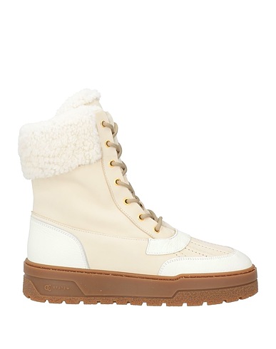 padded ankle boots, leather, solid color, no appliqués, lined in shearling, lace-up, zipper fastening, round toe, wedge heel, rubber sole, contains non-textile parts of animal origin