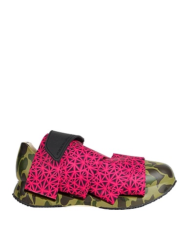 low-top sneakers, rubber, brand logo, camouflage-print, rubber lining, velcro fastening, round toe, rubber cleated sole