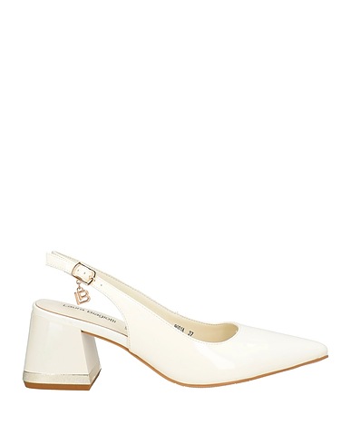 slingback pumps, coated fabric, patent-effect, solid color, brand logo, rubber lining, buckle-fastening ankle strap, pointed toe, square heel, rubber sole