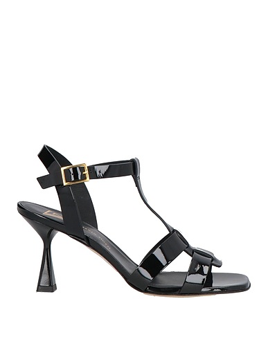 ankle strap sandals, patent leather, solid color, no appliqués, leather lining, buckle fastening, square toe, spool heel, leather sole, contains non-textile parts of animal origin