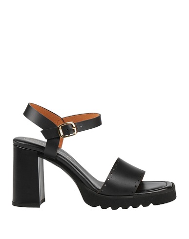 ankle strap sandals, leather, solid color, no appliqués, leather lining, buckle-fastening ankle strap, square toe, square heel, rubber cleated sole, contains non-textile parts of animal origin