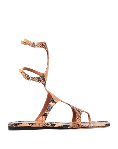 thong gladiator sandals, leather, snakeskin-print, no appliqués, leather lining, square toe, flat, leather sole, contains non-textile parts of animal origin
