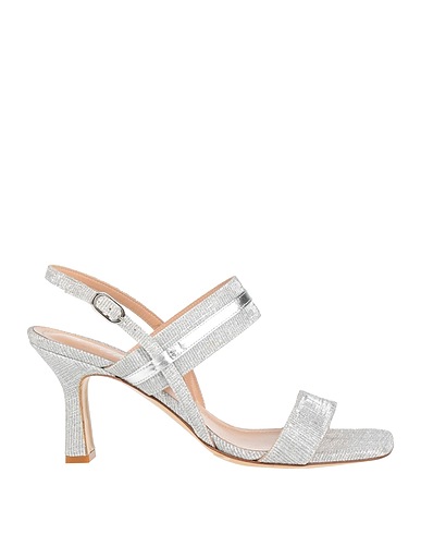 ankle strap sandals, woven, metallic, solid color, leather trims, leather lining, buckle fastening, square toe, spool heel, leather sole, contains non-textile parts of animal origin