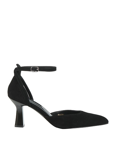 pumps, leather, solid color, no appliqués, leather lining, buckle-fastening ankle strap, pointed toe, spool heel, rubber sole, contains non-textile parts of animal origin