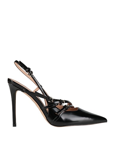 slingback pumps, coated fabric, patent-effect, solid color, no appliqués, unlined, zipper fastening, pointed toe, spike heel, rubber sole