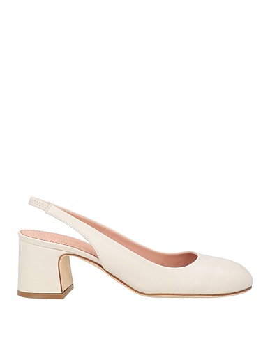 slingback pumps, leather, solid color, no appliqués, leather lining, elasticized strap, round toe, square heel, leather/rubber sole, contains non-textile parts of animal origin