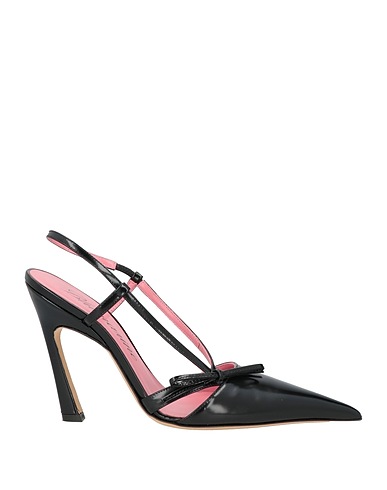 slingback pumps, leather, solid color with appliqués, bow-detailed, leather lining, elasticized strap, pointed toe, geometric heel, covered heel, leather sole, contains non-textile parts of animal origin