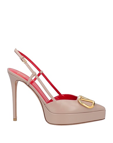 slingback pumps, leather, solid color, brand logo, leather lining, buckle fastening, pointed toe, spike heel, covered heel, leather sole, contains non-textile parts of animal origin