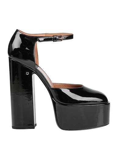 pumps, patent leather, solid color, no appliqués, leather lining, buckle-fastening ankle strap, round toe, square heel, covered heel, leather sole, contains non-textile parts of animal origin, small sized