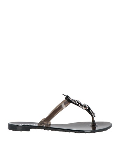 thong sandals, rubber, solid color with appliqués, crystals, rubber lining, round toe, flat, rubber cleated sole