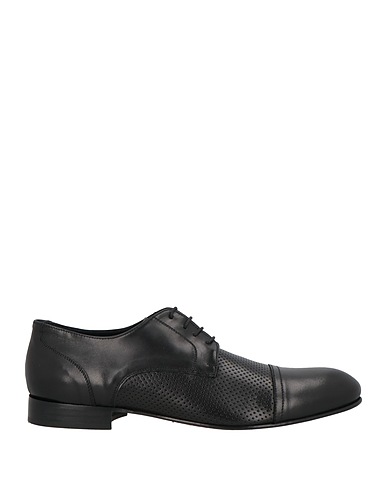 derby shoes, leather, perforated, solid color, no appliqués, leather lining, round toe, flat, leather/rubber sole, contains non-textile parts of animal origin