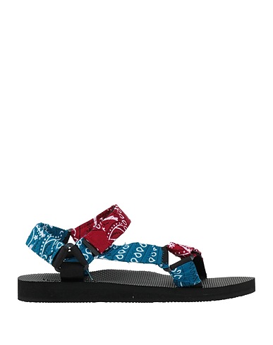 technical sandals, woven, paisley-print, brand logo, rubber lining, velcro fastening, round toe, flat, rubber cleated sole, handmade