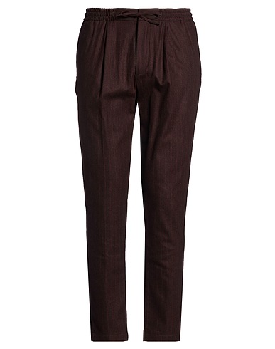 tailored pants, flannel, pinstriped, no appliqués, mid rise, drawstring waist, tapered leg, slim fit, zipper fastening, hook fastenings, slit pockets, welt pockets, dry clean, do not bleach, do not tumble dry, get your look right with this designer outfit, suited for business meetings or special occasions
