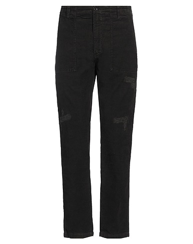 casual pants, corduroy, distressed, stretchy fabric, solid color, brand logo, high waisted, belt loops, straight leg, regular fit, 1 button, zipper fastening, patch pockets, flap pocket, machine wash or dry clean, do not bleach, tumble dry