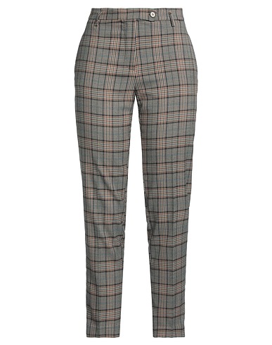 tweed, no appliqués, glen plaid, high waisted, tapered leg, regular fit, with double buttons, zipper closure, multipockets, stretch, tailored