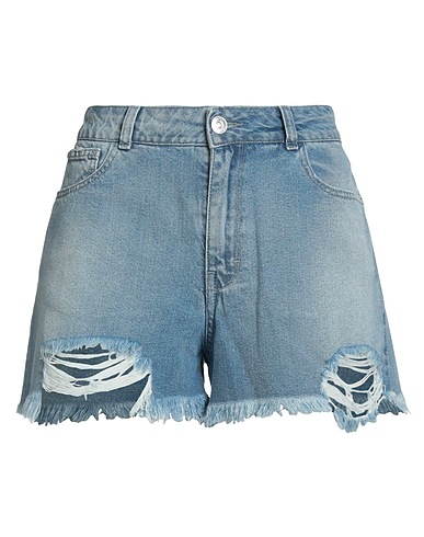 shorts, denim, distressed, faded, solid color, brand logo, medium wash, high waisted, zipper fastening, button fastenings, five pockets, planning a weekend getaway or beach vacation? this is the effortless summer style you need