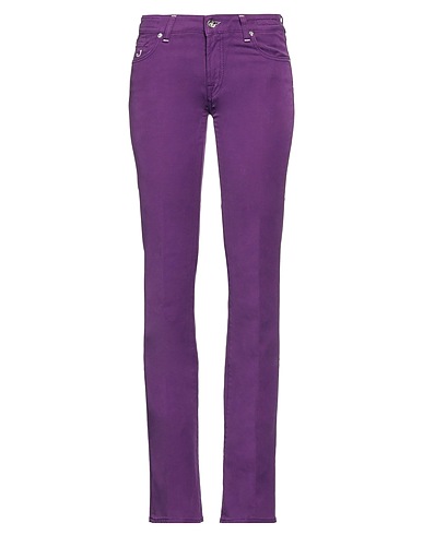 plain weave, brand logo, solid color, low waisted, flared cut, slim-leg pants, 1 button, zipper closure, five pockets, stretch, 5 pocket