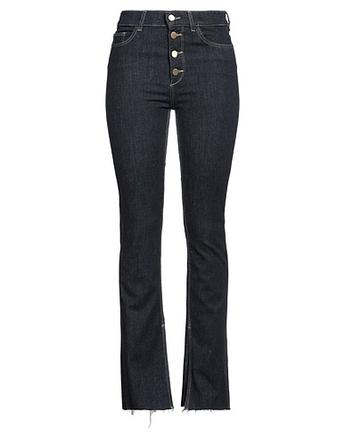 denim, faded, brand logo, solid color, dark wash, high waisted, wide leg, regular fit, button closing, multipockets, skinny model