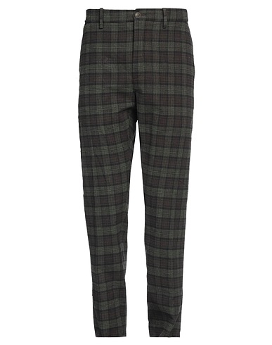plain weave, no appliqués, tartan pattern, mid rise, tapered leg, regular fit, zipper closure, button closing, multipockets, stretch, pants