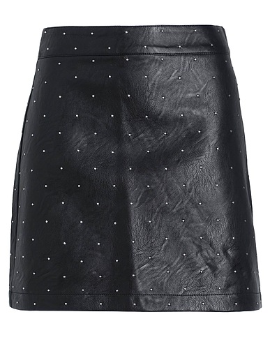 coated fabric, studs, solid color with appliqués, unlined, zipper fastening, no pockets, stretch, flared skirt