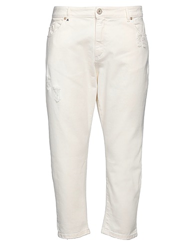 straight-leg jeans, denim, distressed, solid color, brand logo, colored wash, high waisted, belt loops, regular fit, 1 button, zipper fastening, cropped