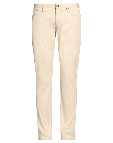 casual pants, gabardine, solid color, leather trims, brand logo, low waisted, belt loops, tapered leg, regular fit, 1 button, zipper fastening, stretch, contains non-textile parts of animal origin