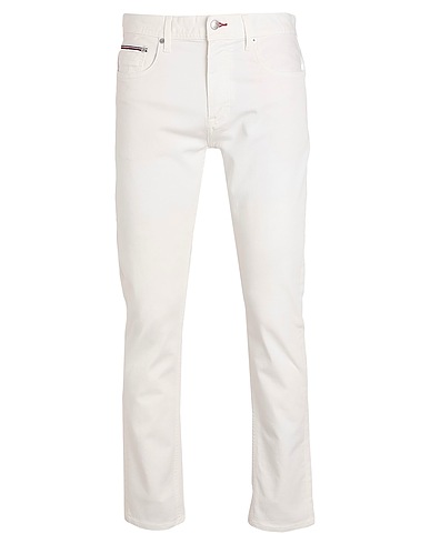 tapered jeans, denim, stretchy fabric, solid color, brand logo, colored wash, mid rise, slim fit, zipper fastening, 1 button, five pockets, machine wash, do not bleach, tumble dry