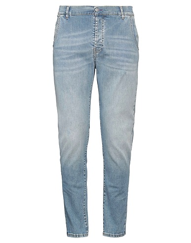 tapered jeans, denim, faded, stretchy fabric, solid color, brand logo, light wash, mid rise, belt loops, regular fit, concealed button fastenings, five pockets, machine wash or dry clean, do not bleach, tumble dry