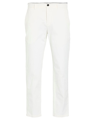 chino pants, gabardine, stretchy fabric, solid color, brand logo, mid rise, belt loops, tapered leg, regular fit, zipper fastening, button fastenings, multipockets, machine wash or dry clean, do not bleach, do not tumble dry