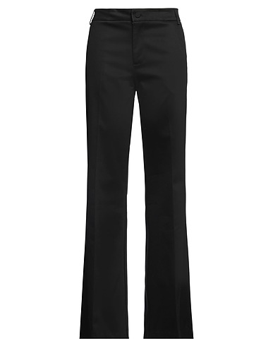flared pants, satin, stretchy fabric, solid color, no appliqués, high waisted, regular fit, zipper fastening, button fastenings, pockets, dry clean, do not bleach, do not tumble dry
