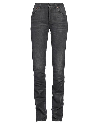 denim, coated effect, brand logo, solid color, colored wash, mid rise, belt loops, regular fit, unlined, multipockets, machine wash, do not bleach, tumble dry, boot-cut jeans