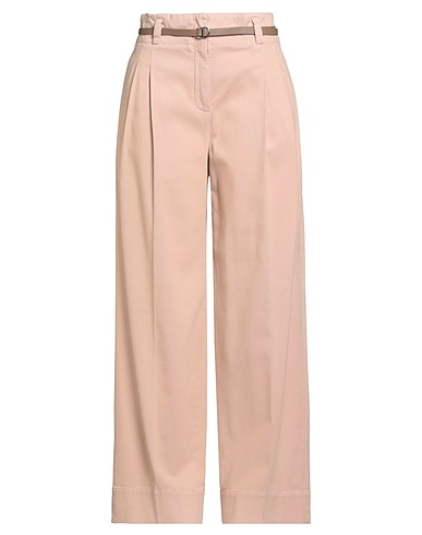 wide-leg pants, gabardine, stretchy fabric, solid color with appliqués, darts, belt, high waisted, belt loops, relaxed fit, zipper fastening, hook fastenings, multipockets, machine wash, do not bleach, tumble dry