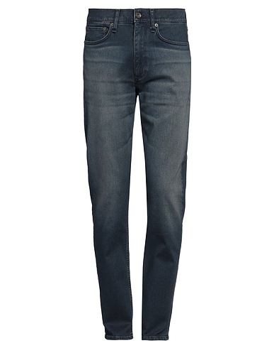 tapered jeans, denim, faded, stretchy fabric, solid color, embroidered logo, dark wash, mid rise, slim fit, zipper fastening, 1 button, five pockets, machine wash, do not bleach, tumble dry, do not iron