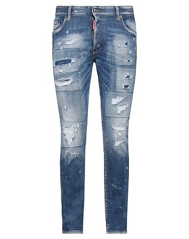 skinny jeans, denim, faded, distressed, stretchy fabric, solid color, brand logo, medium wash, mid rise, regular fit, button fastenings, five pockets, machine wash, do not bleach, do not tumble dry