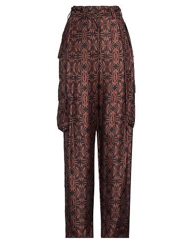 cargo pants, satin, two-tone, no appliqués, high waisted, belt loops, relaxed fit, button fastenings, multipockets, dry clean, do not bleach, do not tumble dry