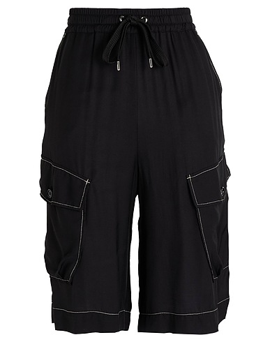 cargo shorts, twill, solid color, no appliqués, low-crotch, relaxed fit, drawstring fastening, pockets, machine wash or dry clean, do not bleach, do not tumble dry