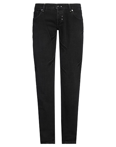 straight-leg jeans, denim, solid color, brand logo, leather trims, colored wash, low waisted, regular fit, button fastenings, five pockets, machine wash, do not bleach, do not tumble dry, contains non-textile parts of animal origin