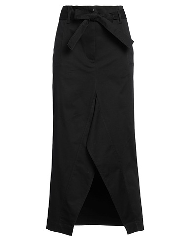 flared skirt, twill, stretchy fabric, solid color, belt, unlined, zipper fastening, front slit, slit pockets, hand wash or dry clean, do not bleach, do not tumble dry