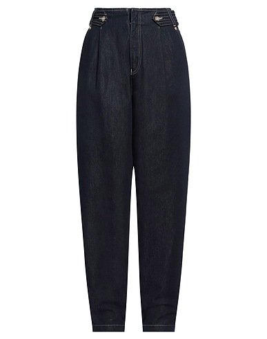 tapered jeans, denim, solid color, brand logo, dark wash, high waisted, regular fit, snap fastenings, zipper fastening, multipockets, machine wash, do not bleach, do not tumble dry