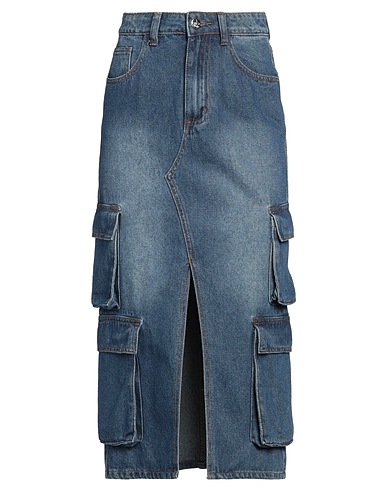 pencil skirt, denim, faded, solid color, brand logo, dark wash, belt loops, unlined, 1 button, zipper fastening, front slit, multipockets, machine wash or dry clean, do not bleach, do not tumble dry